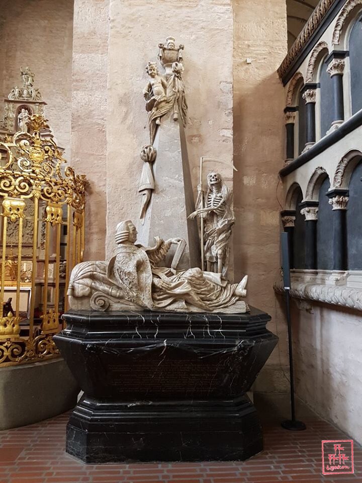 Als Scyomant bin ich stets vom Grabmal des Kurfürsten Johann IX. Philipp, Reichsgraf von Walderdorff fasziniert. Der lesende Fürst liegt auf seinem Sarkophag, während neben ihm ein Gerippe mit Sense steht und auf den Spruch “Ecce hora est” verweist. So gemahnt das Grabmal uns, dass für jeden Menschen irgendwann das letzte Stündlein geschlagen hat.